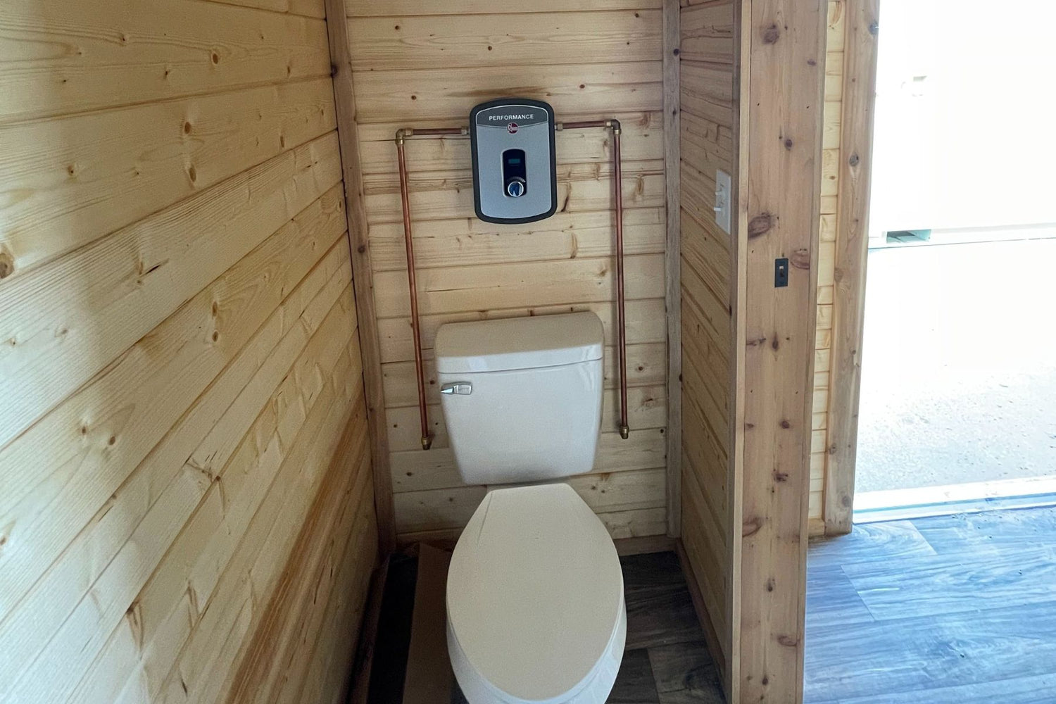 Full Bathroom with 36" one piece shower, Vanity with Sink, Toilet, Tankless Water Heater, and Stackable Washer / Dryer Connections