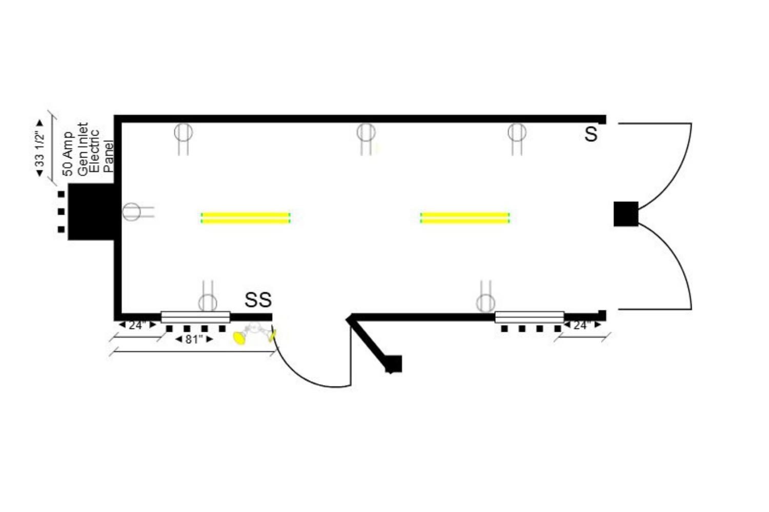 Electric Package with 100 Amp Service Panel, Interior 4’ LED Lights, Exterior LED Floodlight, and Outlets