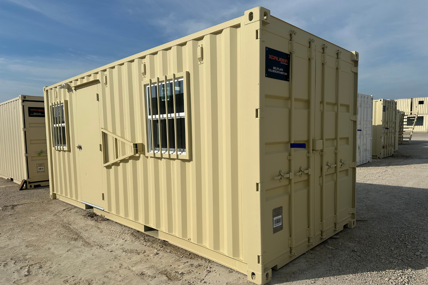 XCaliber Container's Mobile Office Containers are designed with the client in mind. Fabricated from New 1-Trip Shipping Containers, our Mobile Office Units are secure, portable, and efficient, with modifications including exterior security features, spray foam insulation, AC/heat units, and more. XCaliber's Mobile Office units are available for quick nationwide delivery.