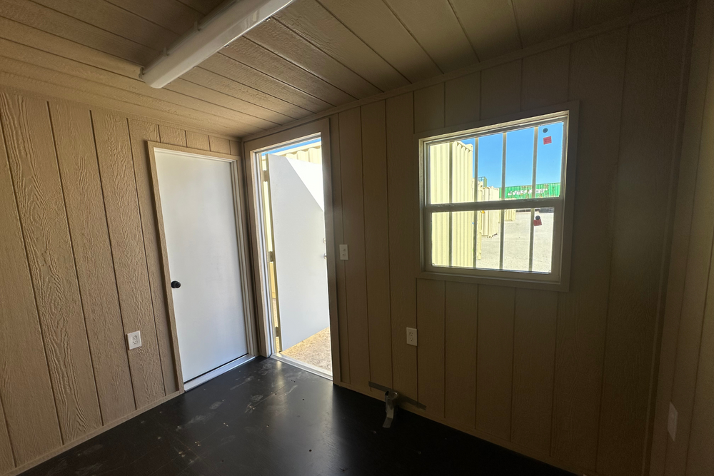 Choose a paint color from the paint options XCaliber Container keeps in inventory. Select from Sherwin-Williams - New Container Tan, Volcanic Rock, Lovers Leap, Barnwood, Carbon, Steiglitz Fog, Cross My Heart, Hunters Orange, Swiss Coffee, La Grange. Includes 2 complete coats on sides and roof.