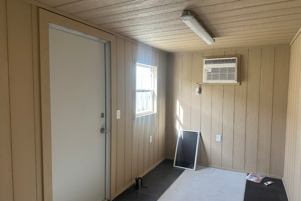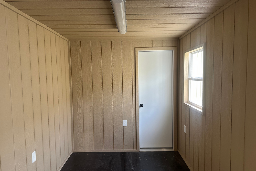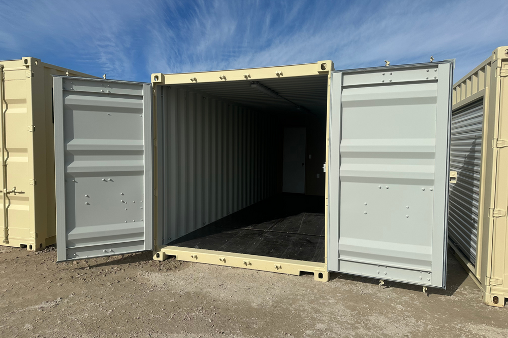 Choose a paint color from the paint options XCaliber Container keeps in inventory. Select from Sherwin-Williams - La Grange, Carbon, Steiglitz Fog, Hunter's Orange, Cross My Heart, Barnwood, and Swiss Coffee. Includes 2 complete coats on sides and roof.