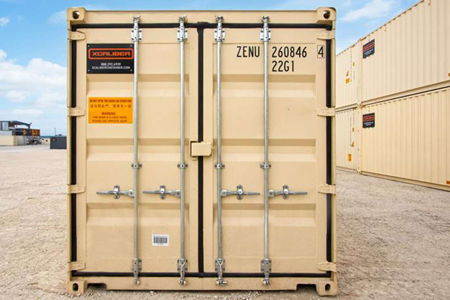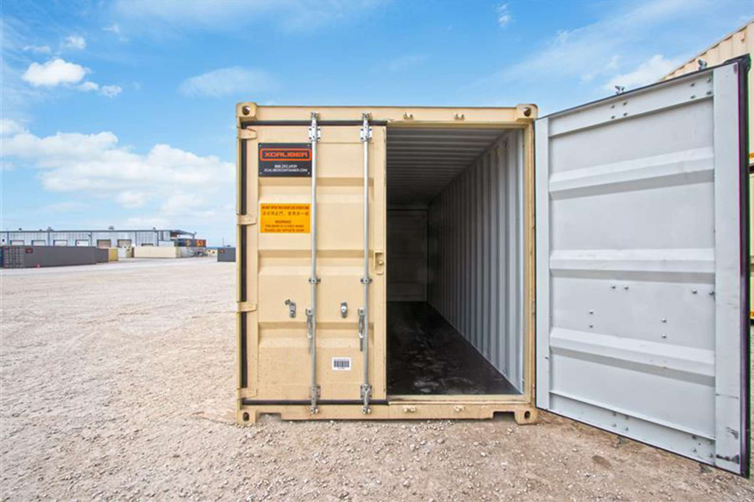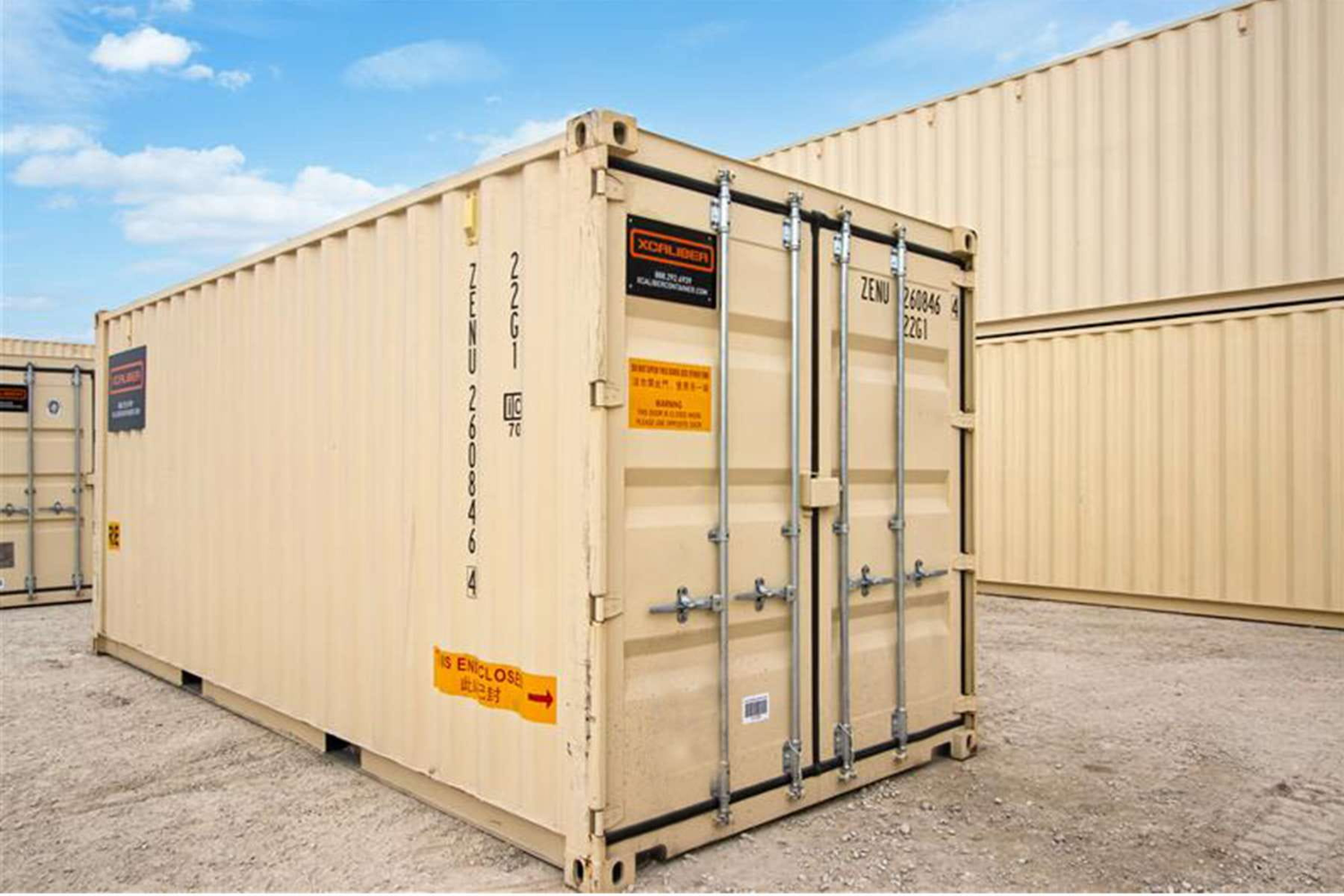 Choose a paint color from the paint options XCaliber Container keeps in inventory. Select from Sherwin-Williams - New Container Tan, Volcanic Rock, Lovers Leap, Barnwood, Carbon, Steiglitz Fog, Cross My Heart, Hunters Orange, Swiss Coffee, La Grange. Includes 2 complete coats on sides and roof.