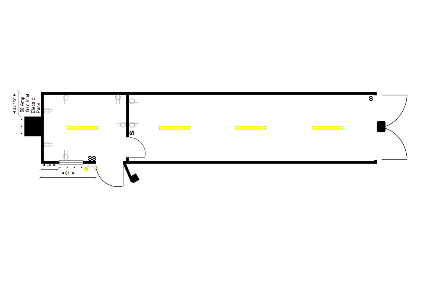 Electric Package with 100 Amp Service Panel, Interior 4’ LED Lights, Exterior LED Floodlight, and Outlets