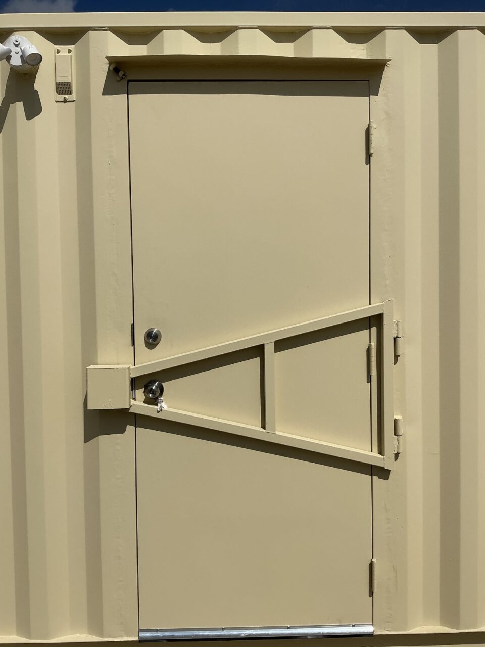 Interior White Swing Door with Keyed Entry from Office to Storage